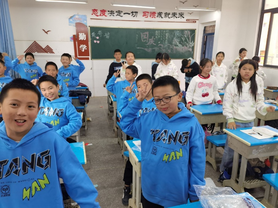 崭新的运动服送到孩子们手中,大家迫不及待地试穿起来,纯真的笑容挂在脸上,幸福之情溢于言表